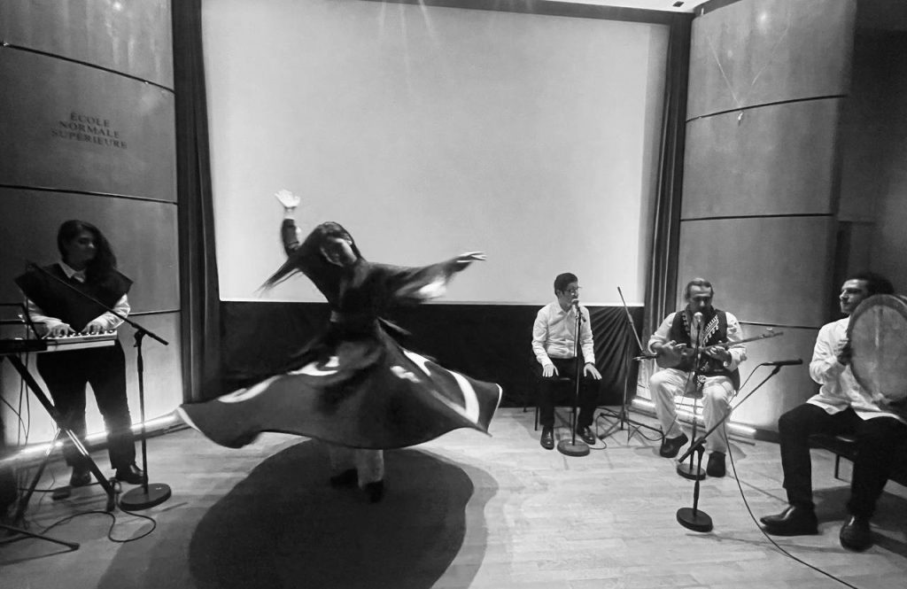 The prestigious ENS University in France recently hosted the concert “From Rumi to Sheikh Amir”. The event featured performances by Farid Elhami, Hamed Zohiri, Ghazaleh Mirzazadeh, Mani Khoshrosh, Lucie Mezo, Massi Bahrami, and Mohammadreza Safaie as musicians, accompanied by Atna Irani who performed the traditional Sufi dance Sama.